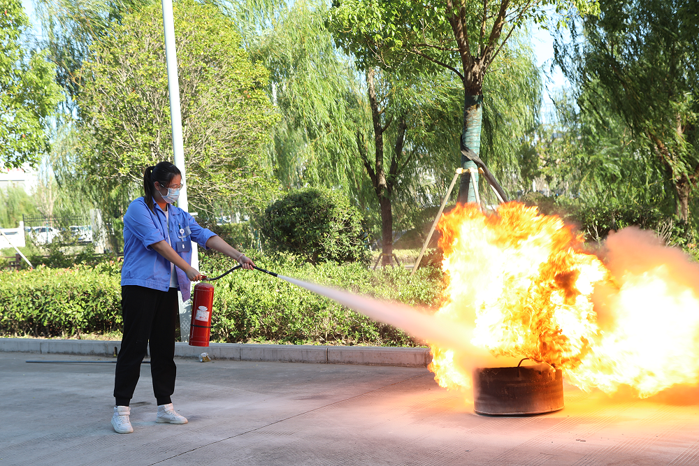 培训结束,参会人员移步至附属楼广场进行了油盆灭火实际演练。在消防员的示范和指导下,新入职的员工纷纷上阵,亲身体验了一次“灭火”,取得了良好的学习效果。