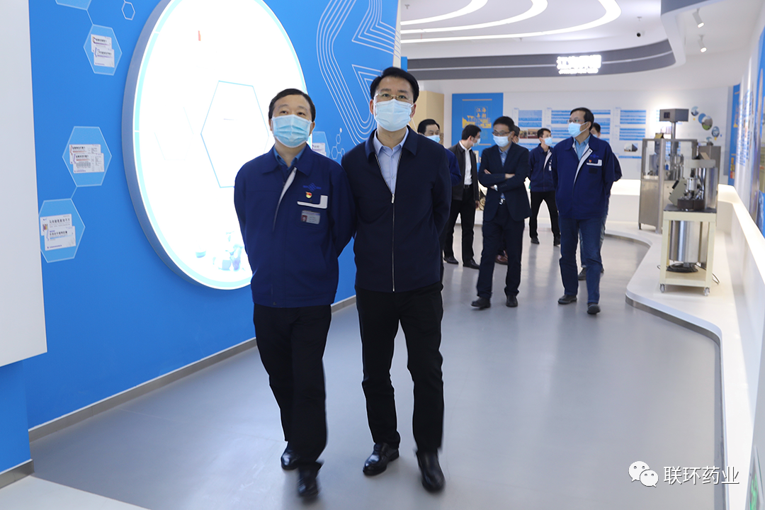 张新钢一行首先检查了公司的疫情防控情况,接着参观了公司的企业文化展示中心,听取了夏春来关于联环药业近年来的发展汇报,着重了解了今年一季度公司的业绩情况以及2022年的发展目标,他对联环药业在疫情防控和生产经营方面做出的努力表示肯定。